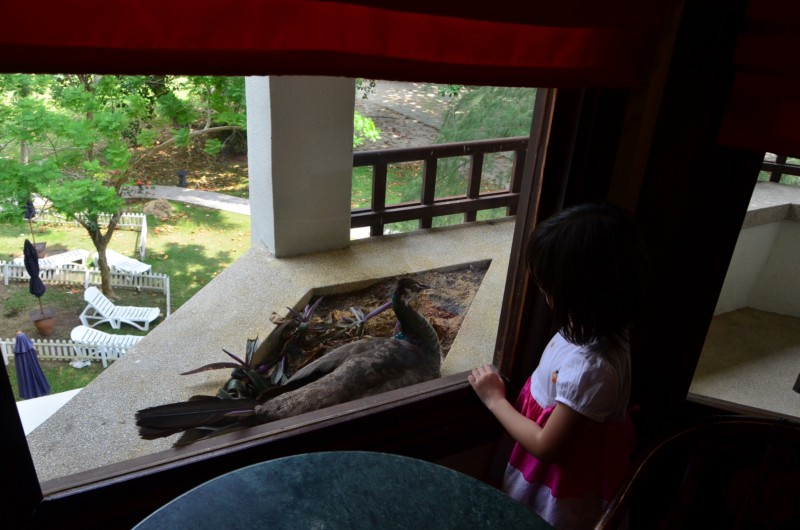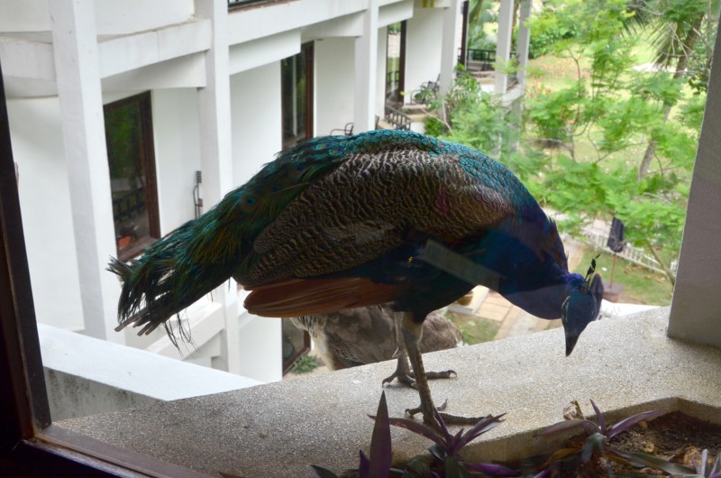 Just outside our hotel room was a nice peacock. Indeed, there were a few of them wondering around at our balcony.