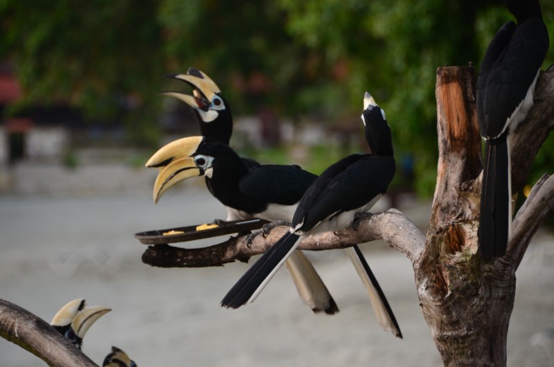 By the evening after coming out from the beach and the pool, we went for a walk and found many hornbills at the front of the swimming pool. It was feeding time!!